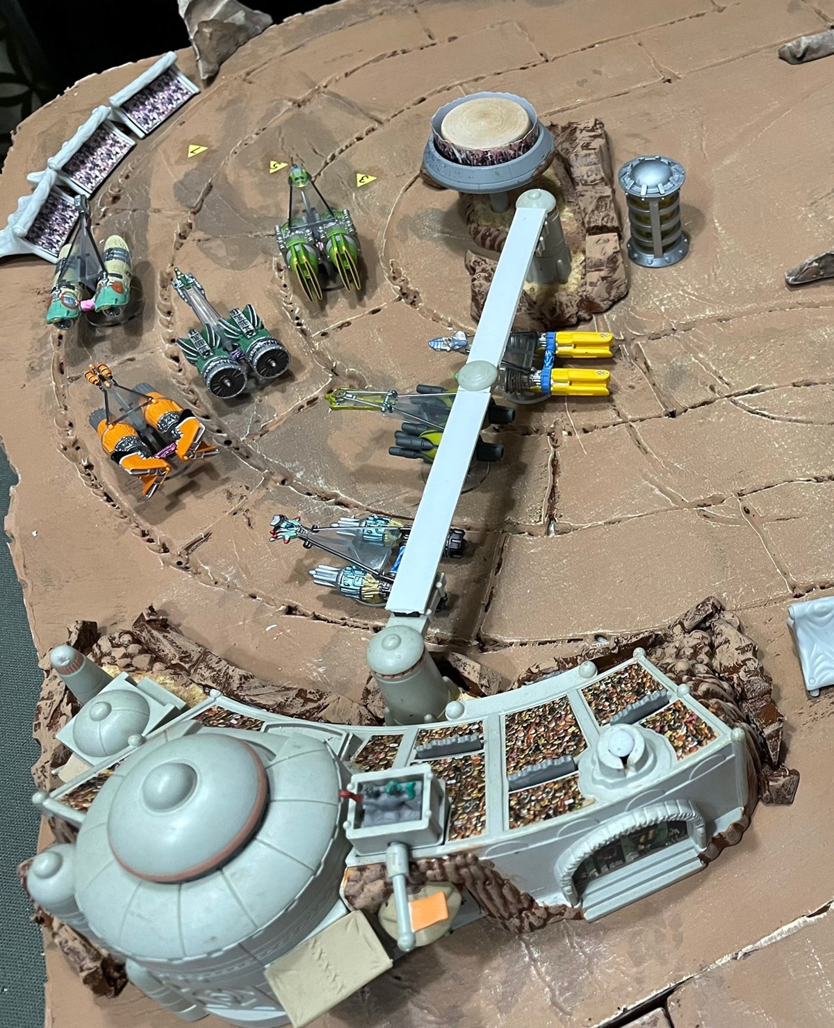 Modded micromachines playset and speeders plus custom terrain elements for my Podracer retheme of "Chariot Race" (Eagle-Gryphon Games)